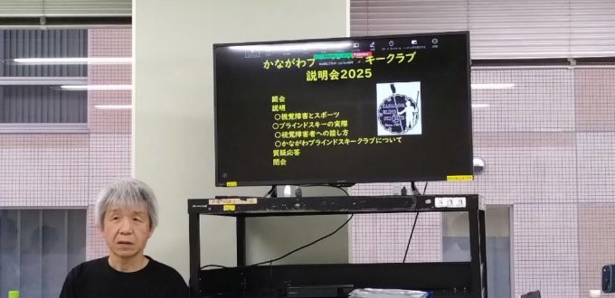パーティー中盤にはビデオ上映を行いました。まず、2023年にNHKで放映された映像を上映し、登場した方々に当時を振り返って感想をいただきました。「スキーの取材なのに、ピアノを弾かされたのが今でも腑に落ちないんです」と、参加最年少のブラインド・NUさんがかわいらしいコメントをされ、会場は笑いに包まれました。